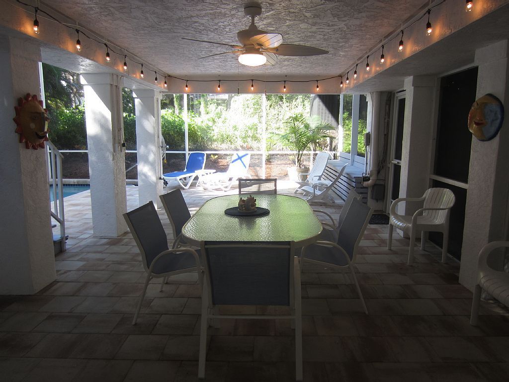 The decor is always kept updated and amenities reflect a finished, comfortable home, rather than a rental unit. The new kitchen is fully equipped for any entertaining needs. Dining choices include a dining room or the screened, furnished lanai by the newly re-finished swimming pool and paver stone covered deck, or even the furnished sun & moon deck on the top level.